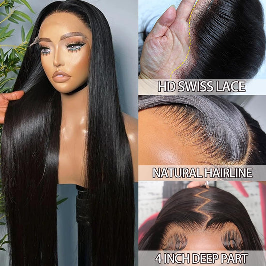 Chicrosa 40inch Straight Human Hair Wig 200% Density 13X4 Real HD Lace Frontal Wig Body Wave Wig Human Hair Water Wave Wig 40 inch Wig Human Hair