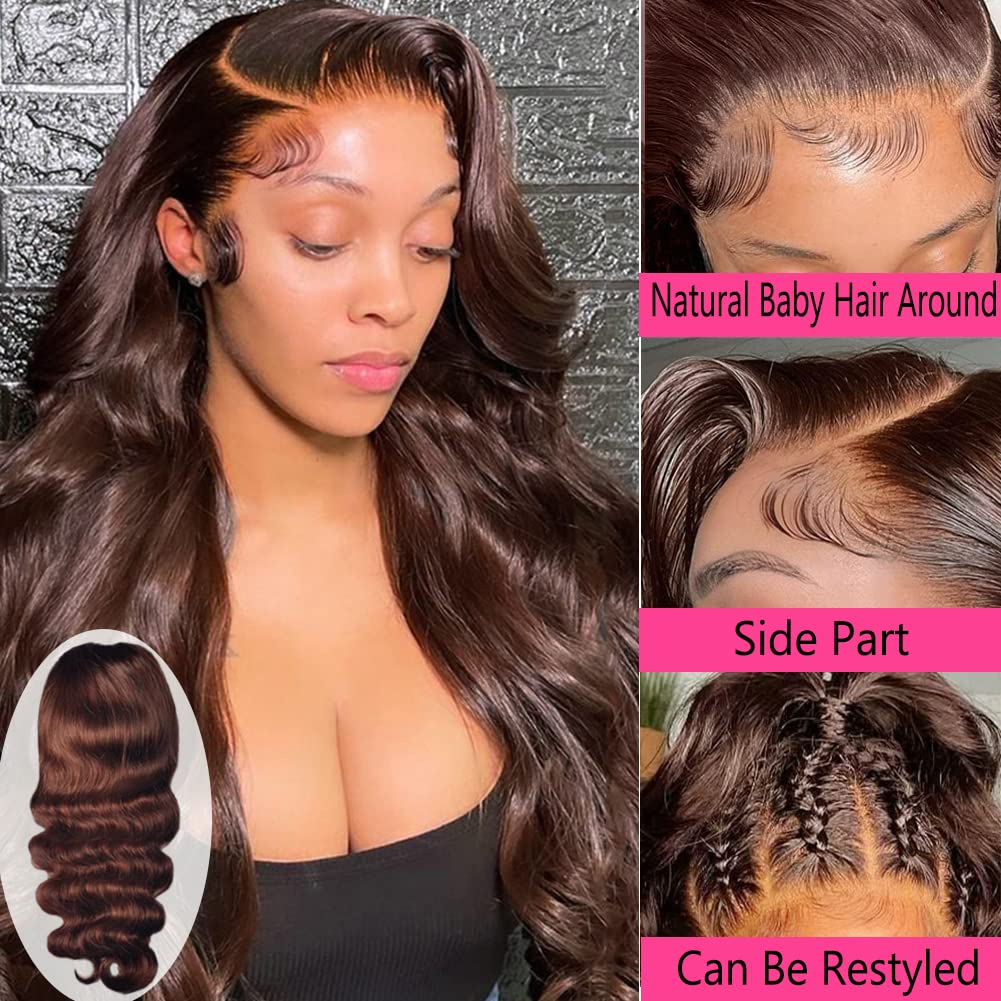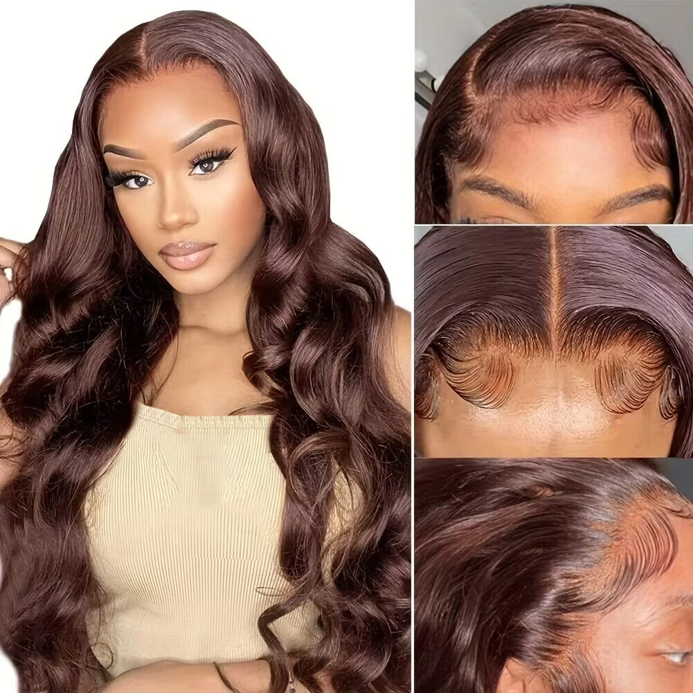 13×4 Lace Front 4# Brown Wavy Wigs Human Hair Pre Plucked Burmese Human Hair