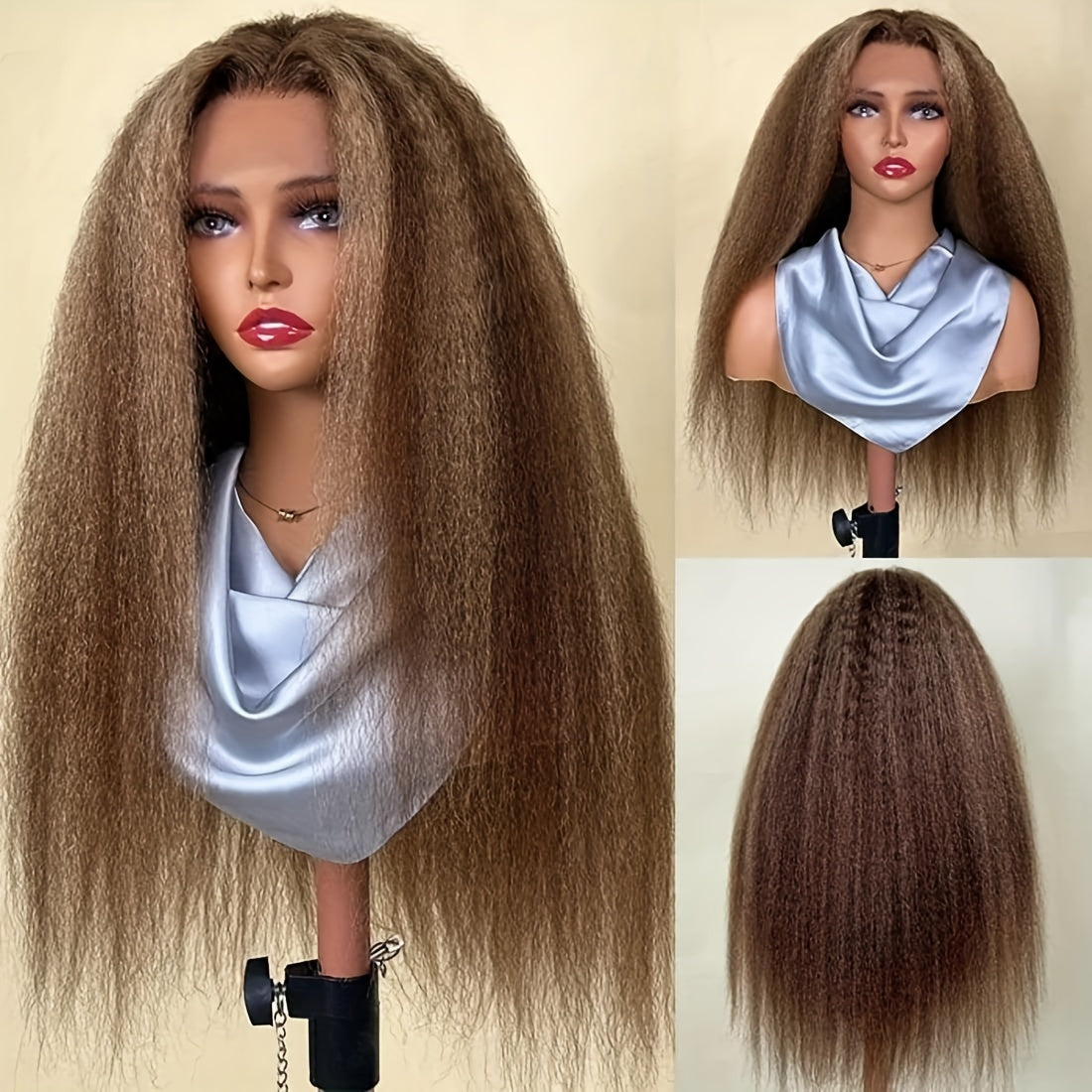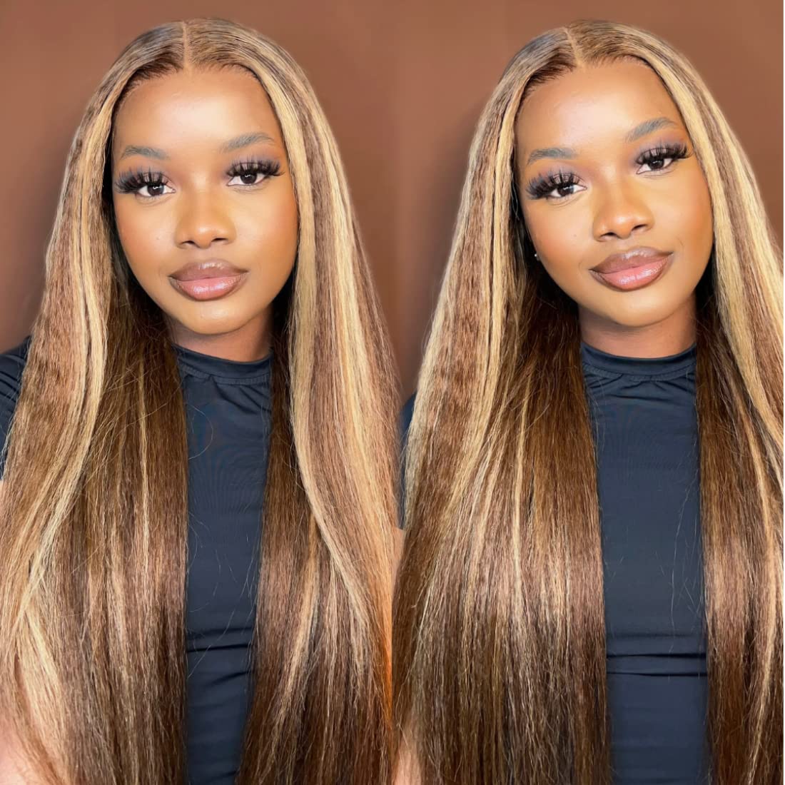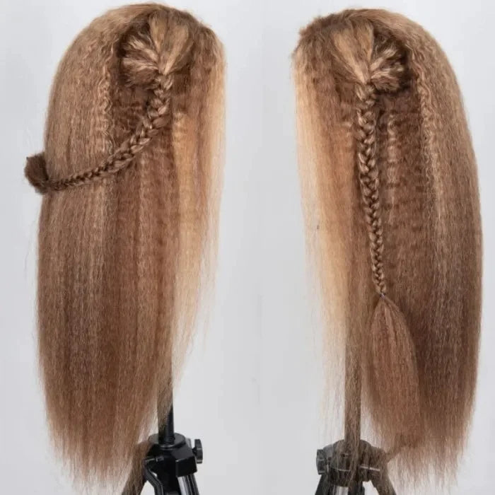 P4/27 Kinky Straight Lace Frontal Wigs 13×4 Lace Front Yiki Straight Hihhlight Human Hair Wigs