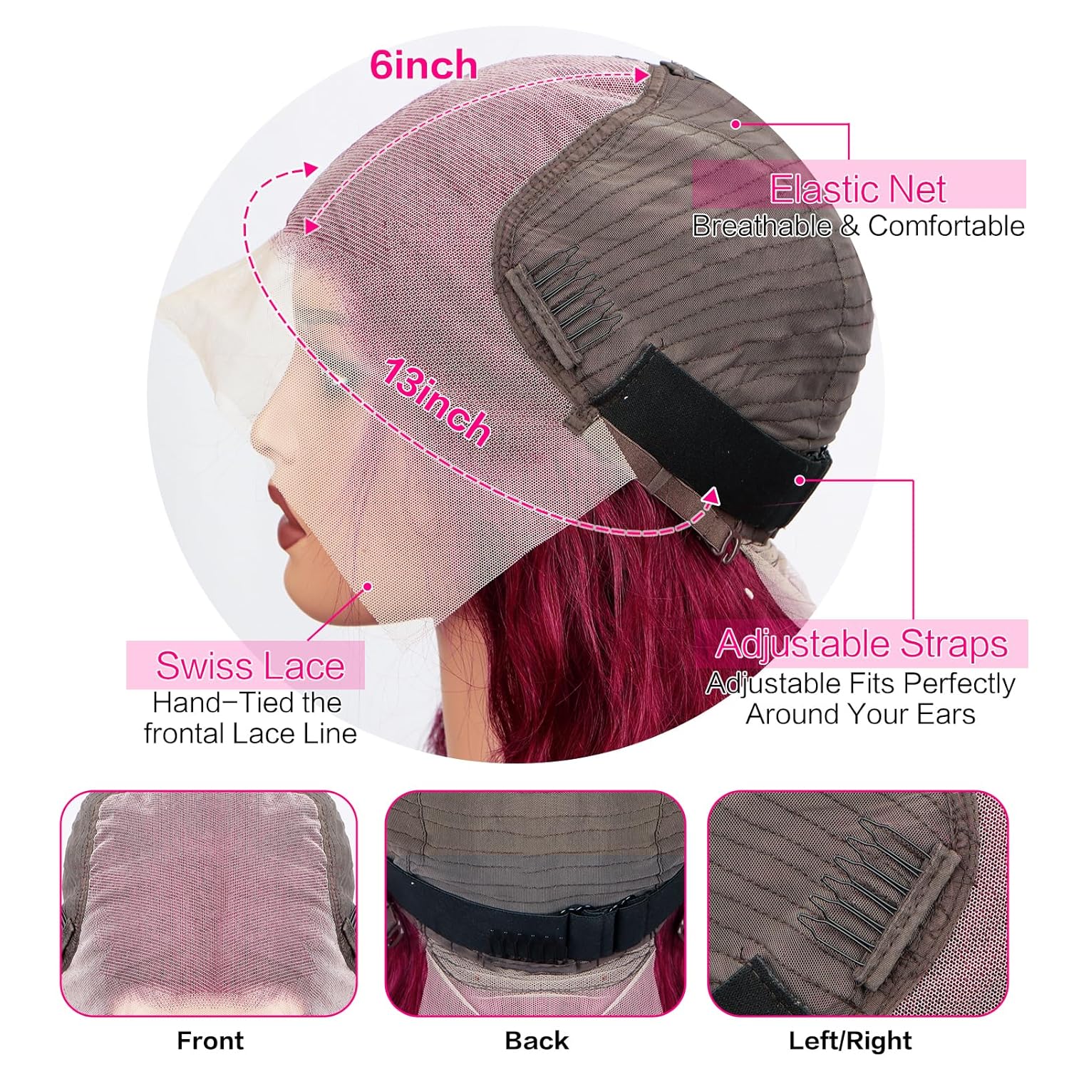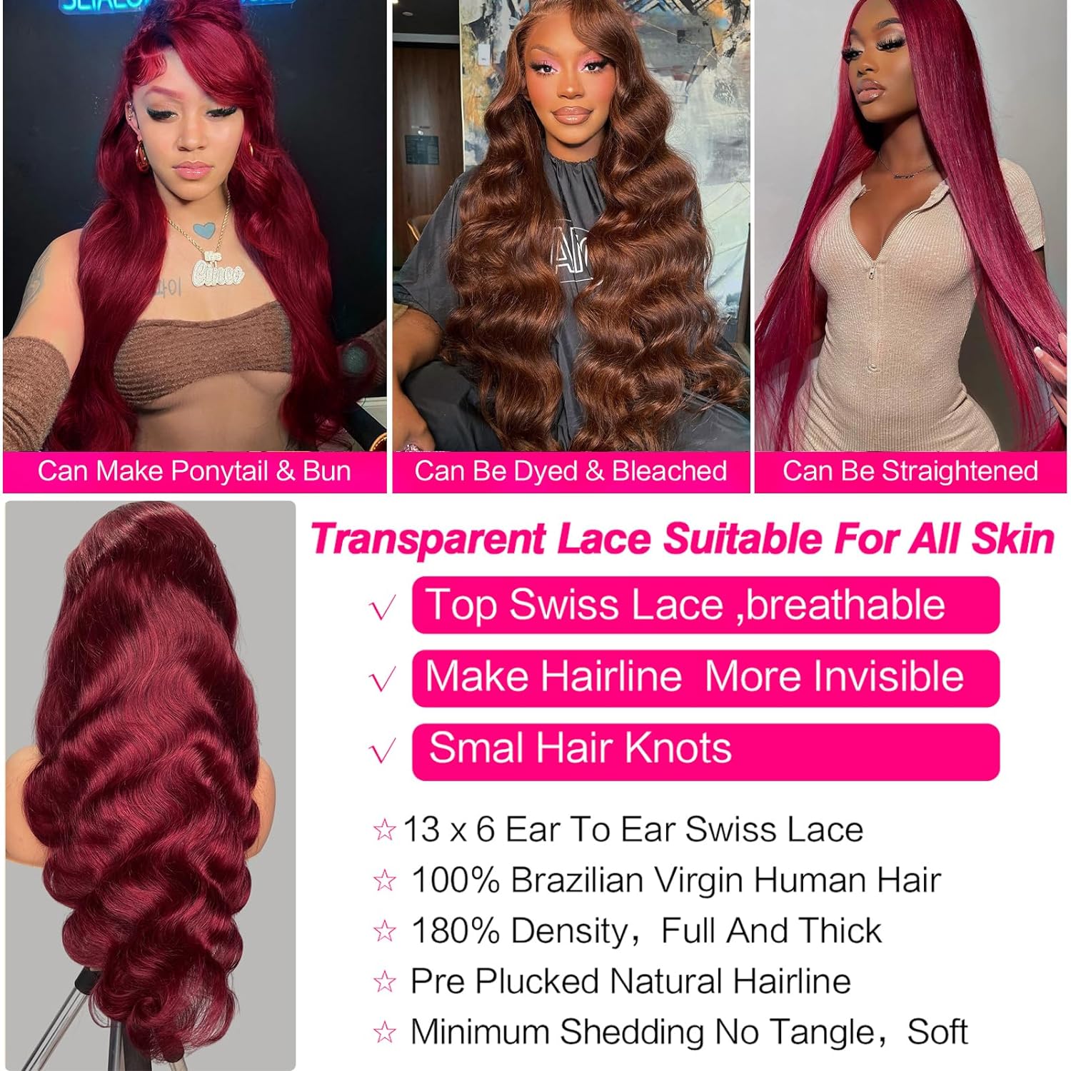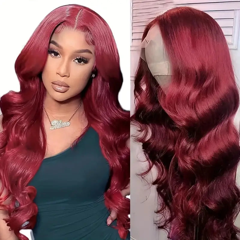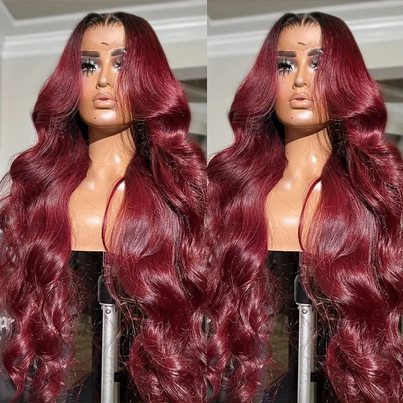 99j Burgundy Lace Front Wigs Human Hair 13x6 Hd Frontal Closure Body Wave Wigs [Queen]