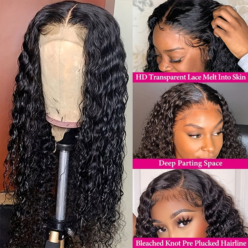 1)Hair Material: 12A unprocessed brazilian water wave remy human hair wig Water Wave 13x4 transparent lace Frontal wig