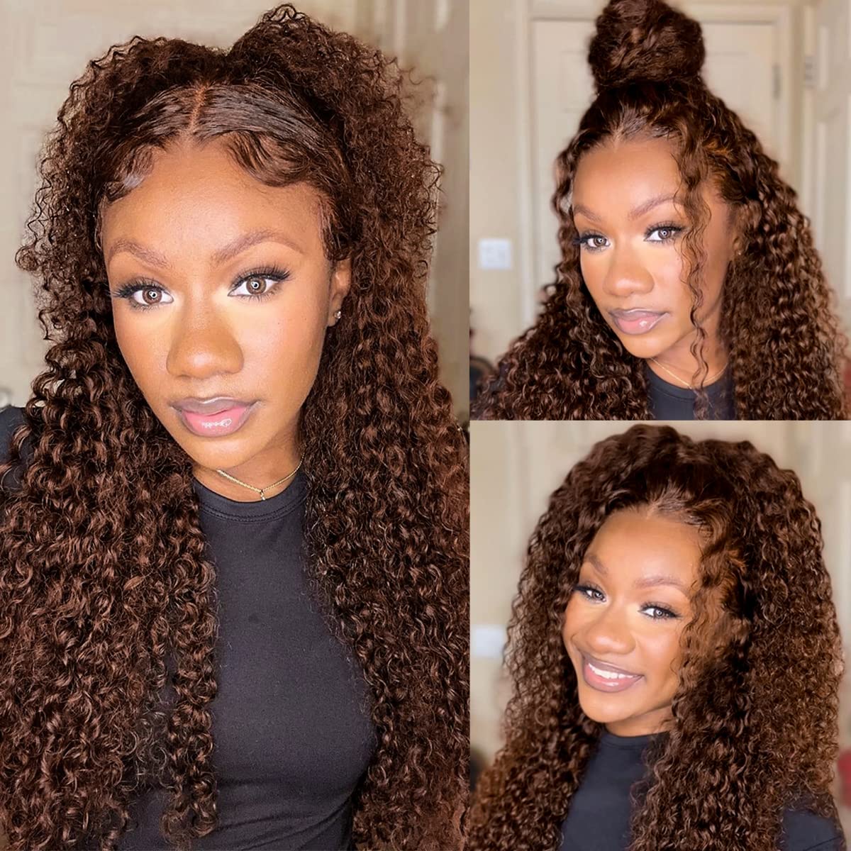 180% Density Dark Brown Kinky Curly Human Hair Wigs 4x4 Lace Closure Curly Wigs [Darling]