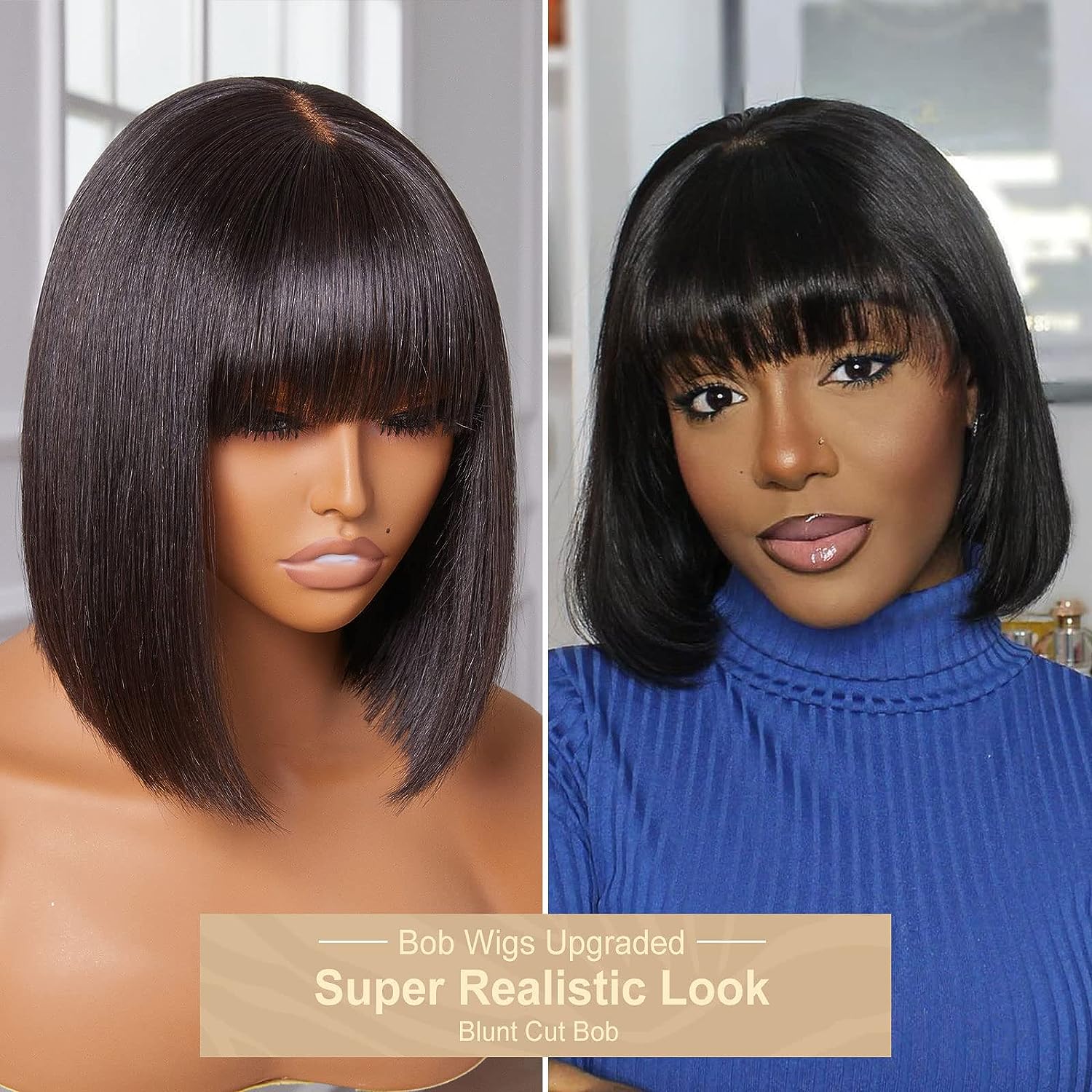 4X4 Glueless Wear And Go Human Hair Wigs Yiki Straight Shortcut Bob Wigs Can Be Customized