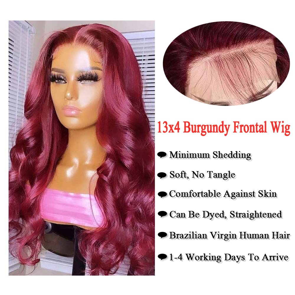 99J Burgundy Lace Front Wigs 13x4 Lace Frontal Body Wave Wig Preplucked with Baby Hair