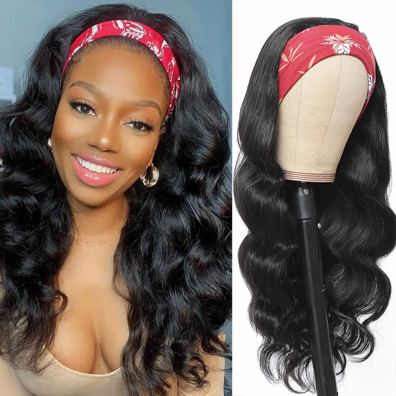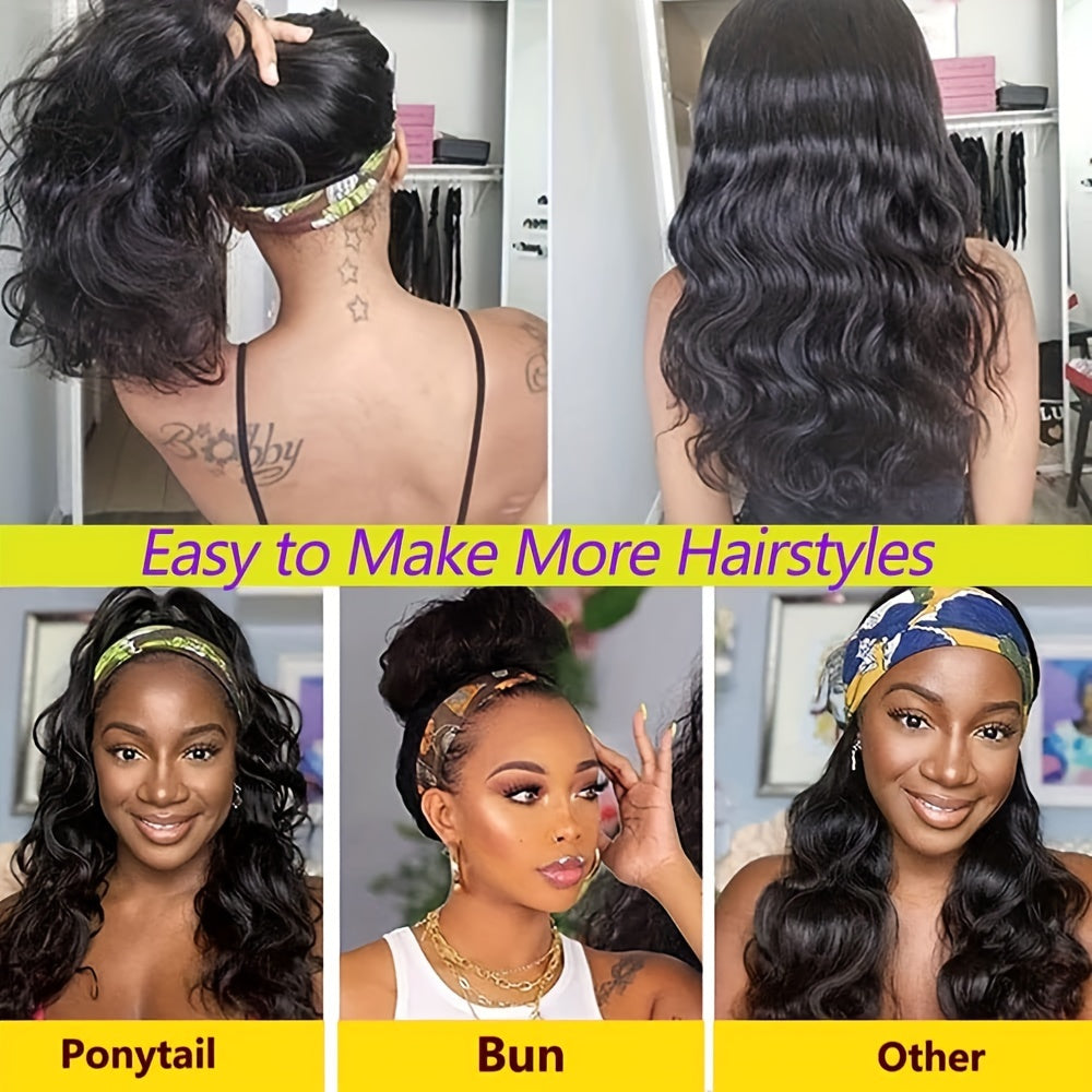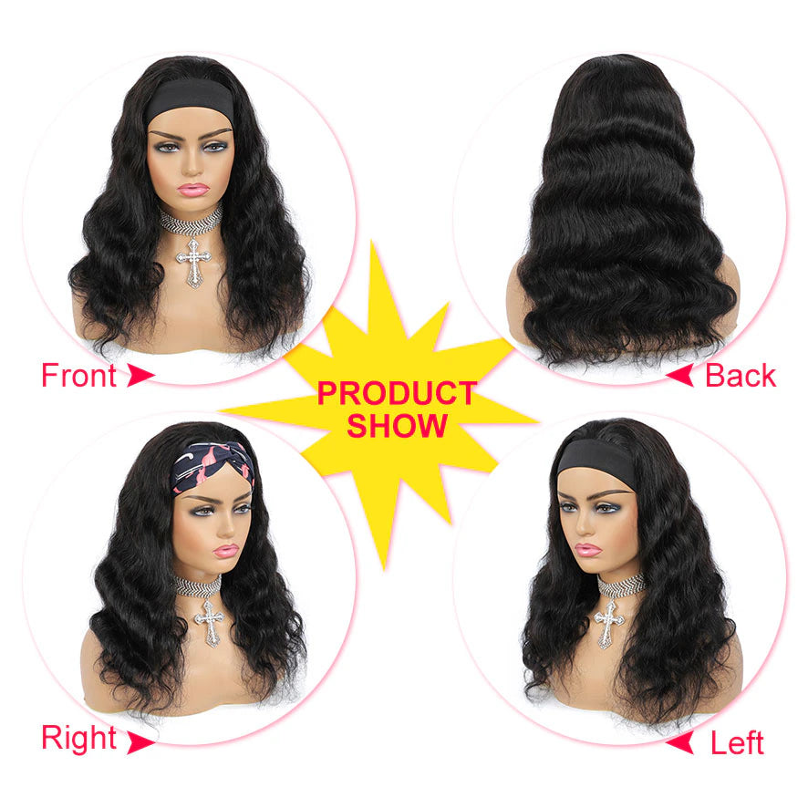 Body Wave Human Hair Headband Wigs Non Lace Machine Made Wigs