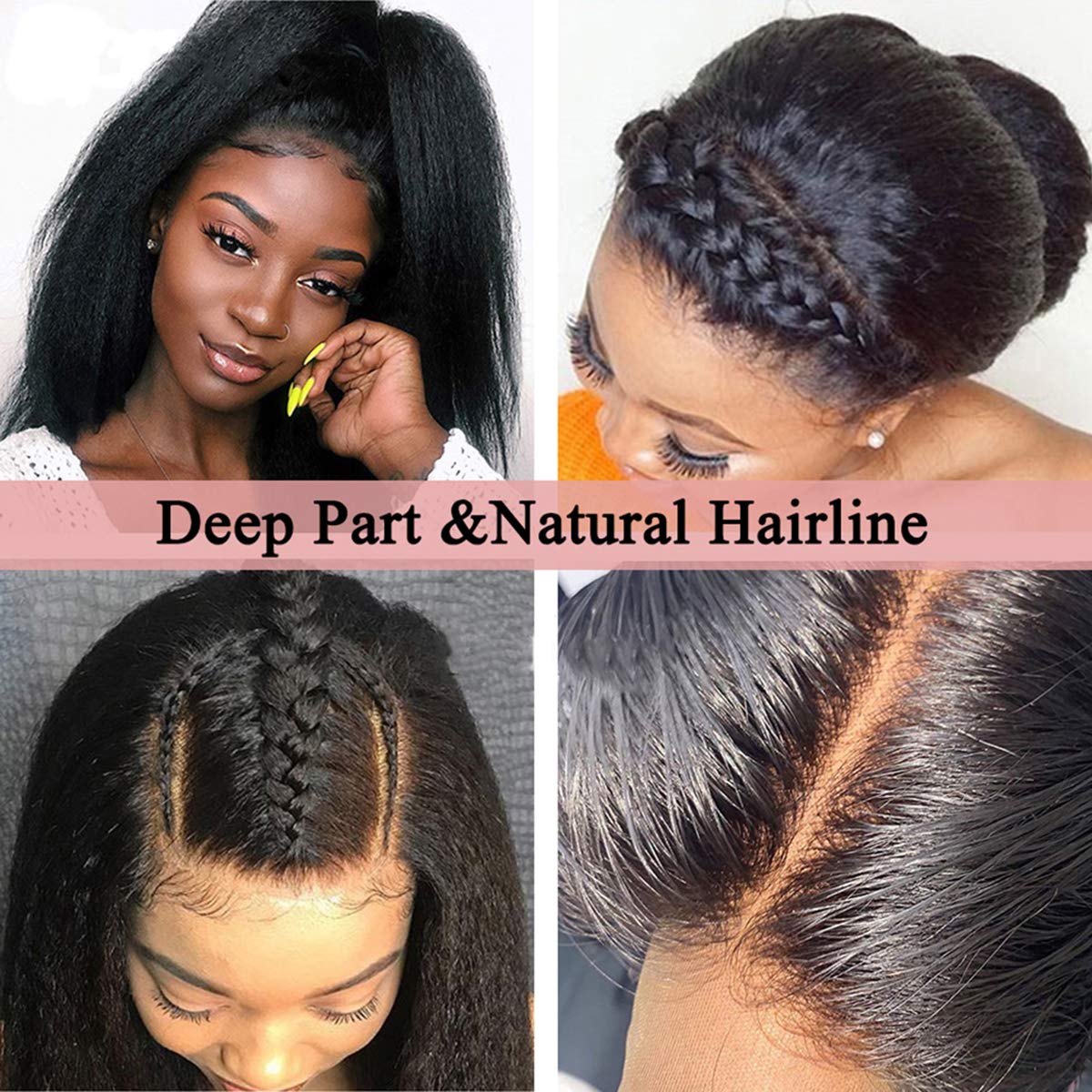 - ❤200% Density Not See Through Tracks Kinky Straight Human Hair Wigs,360 Deep Part Space Full Lace Kinky Straight Wigs. Blend In Any Skins, Melted Lace Hairline Gives You A Natural Looking