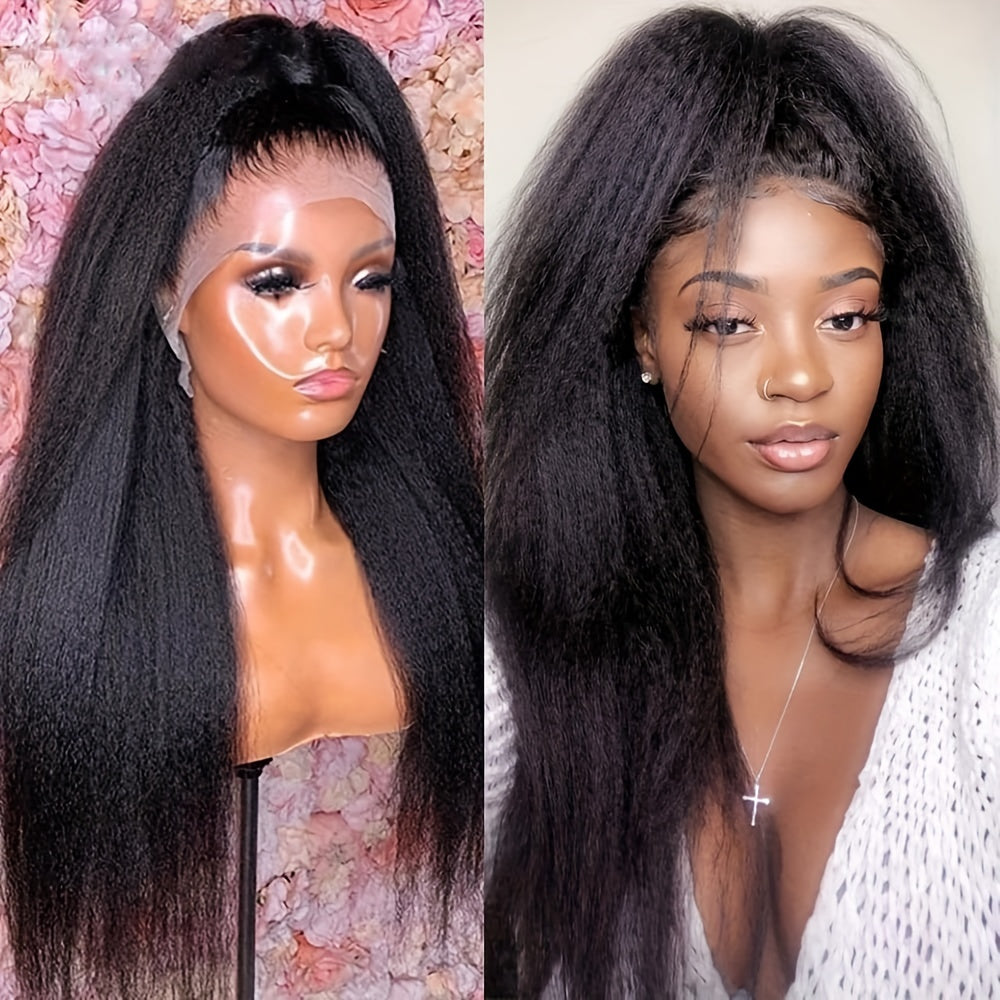- ❤Brazilian Kinky Straight Wigs Color: 16-30 Inch kinky straight hair, Natural Black Color Yaki Lace Front Wigs, Standard Size Kinky Straight Wig.