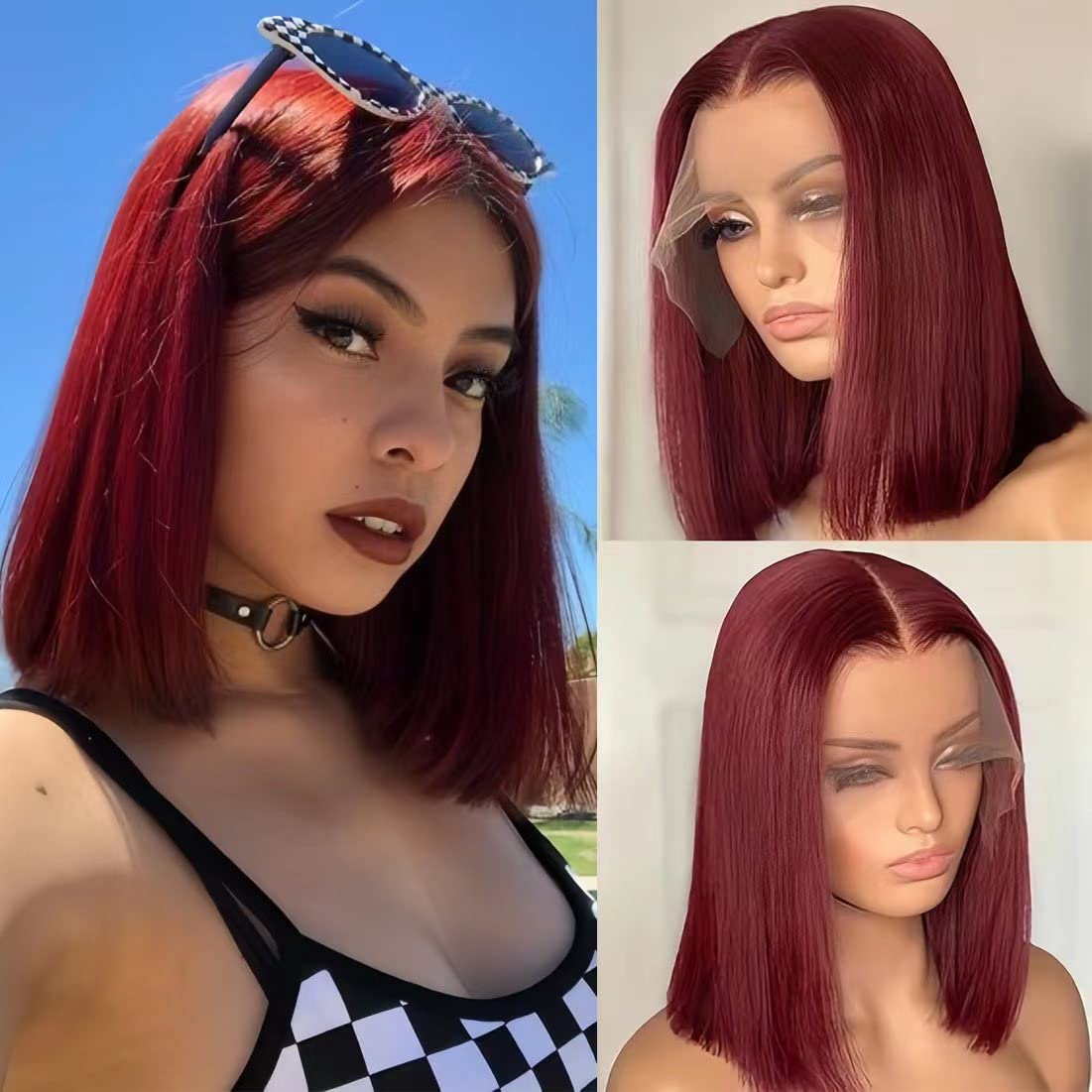 Short Straight 99J Bob Wigs Human Hair 13x4 Lace Closure Bob Wigs for Black Women 150% Density