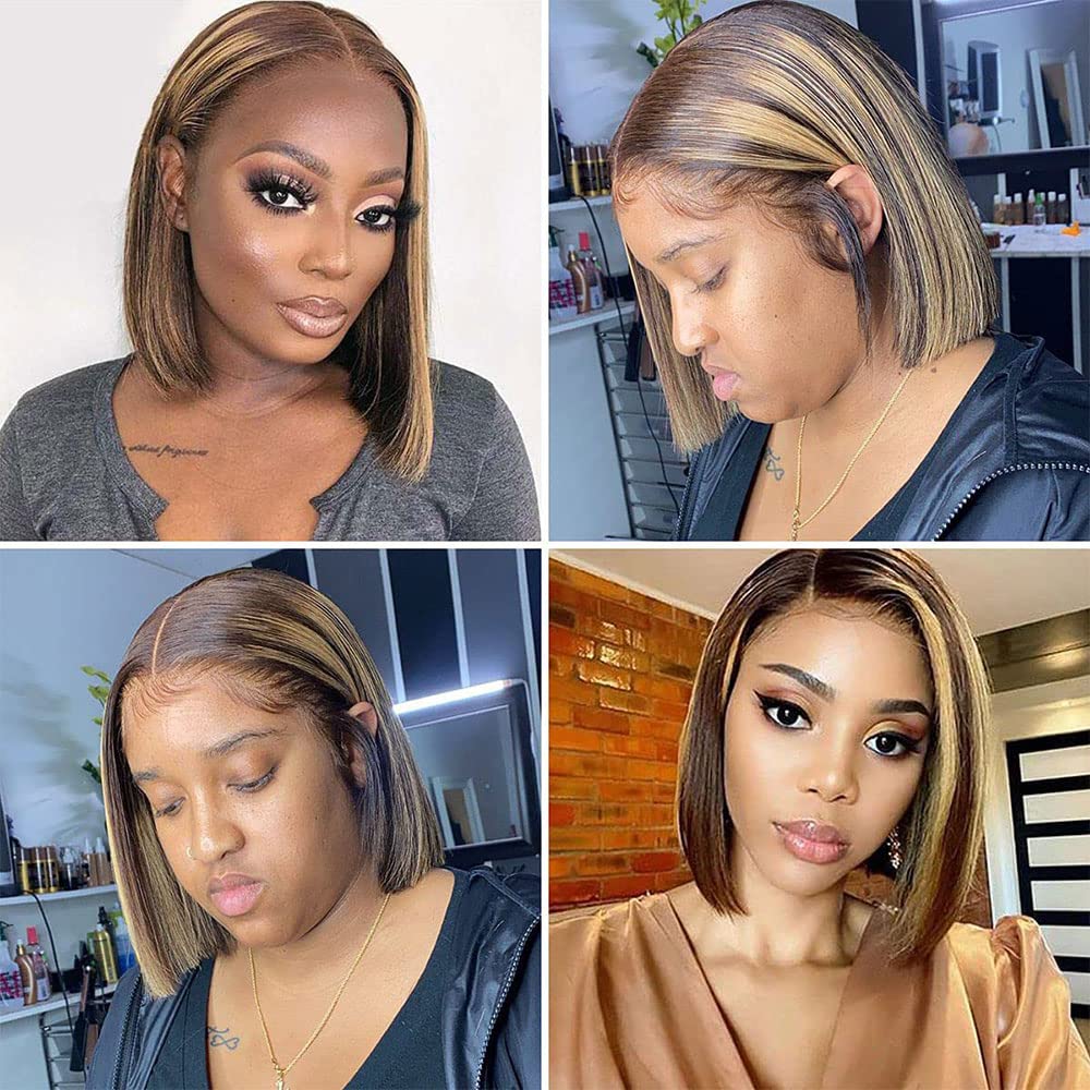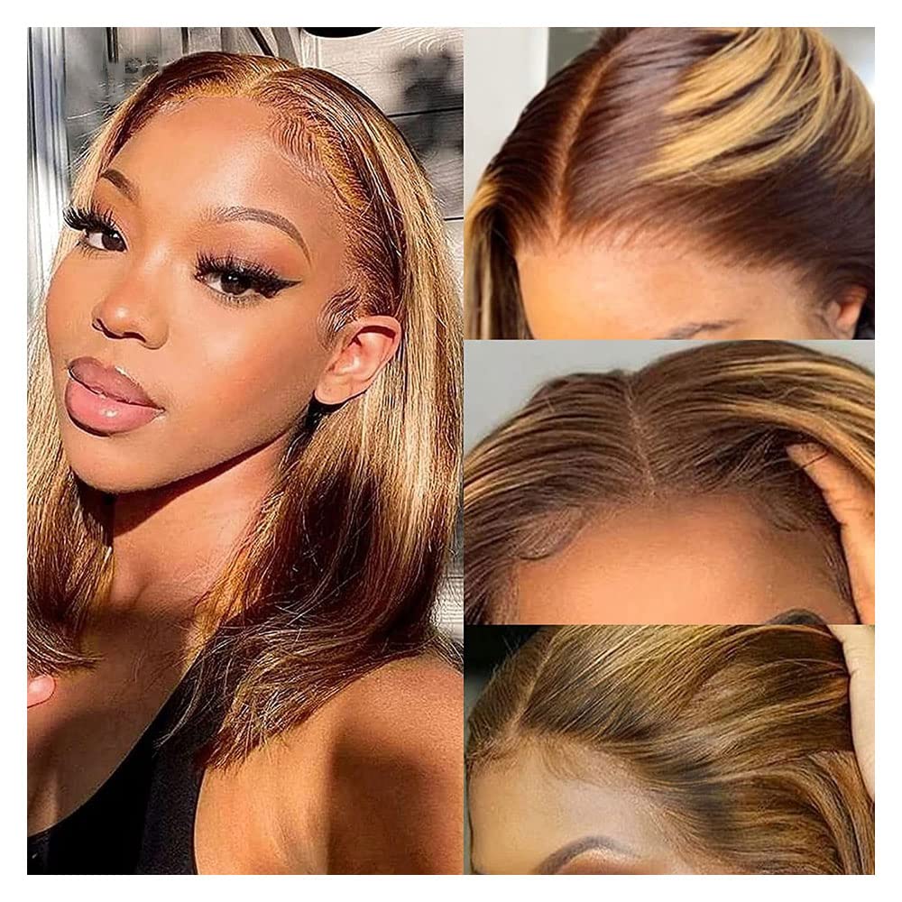 Short Straight Bob Wigs Human Hair 13x6 Lace Closure P4/27 Bob Wigs for Black Women 150% Density